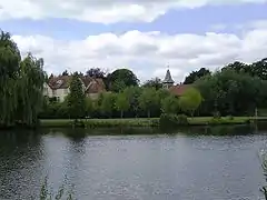 Moulsford Manor, next to the parish church, was from the Middle Ages until 1497 the principal home of the prominent Carew family,[2] who also lived at Carew Castle in Pembrokeshire. The house is largely Edwardian, built around a Tudor core. It was a private residence until 1929 when it was used first as a hotel, and then by the American Air Force during World War II.[3] Post-war it became a nursing school and was restored as a private home in 1994,[4] when it was purchased for Kevin Maxwell's wife by her parents in 1994; they let it out for the filming of Midsomer Murders.[5]