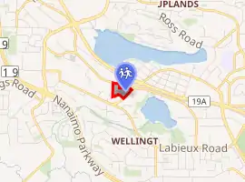 The original school site was provided by Robert Dunsmuir of Dunsmuir & Diggle Co to accommodate a public school for their new coal town of Wellington and the families working in the Wellington Colliery. The first official public school on this site was called "Wellington Public School" and opened on May 20, 1875 as part of the Wellington School District which had been created a year earlier.[1] In 1904, a few years after James Dunsmuir closed the Wellington mine[2] and moved his buildings to Ladysmith, the school was destroyed by fire.[3] A new one room school was completed in 1906 and was later expanded into a two-room school. At this time most of the children's fathers worked for another of Robert Dunsmuir's creations, the E&N Railway.[2] Wellington was the main works yard and the school was located adjacent to both the main station and the roundhouse. World War II created teacher shortages across British Columbia which was the catalyst[4] for the 1942 amalgamation of Wellington into the "Nanaimo-Ladysmith United Rural School District". The second school was destroyed by fire shortly after 1944 while the community was in the process of creating a neighbourhood athletic centre in the school building.[1] In 1945 Wellington's new school district split into "Nanaimo United", and "Ladysmith United", both of which eventually amalgamated into what is the current "Nanaimo-Ladysmith School District".