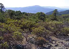 In addition there is a specialized habitat on the upper western face consisting of extensive rock outcrops, which can be considered a variant of the chaparral habitat with small forest pockets.
