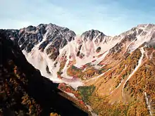 Mount Hotaka (穂高岳, Hotaka-dake), also known as Mount Hotakadake, is one of the 100 Famous Japanese Mountains as coined by the media, reaching a height of 3,190 m (10,466 ft). Mount Hotaka is situated in Japan's Hida Mountains and all its major peaks except Mount Maehotaka, lie on the border between the cities of Matsumoto, Nagano Prefecture, and Takayama, Gifu Prefecture. This mountain is located in Chūbu-Sangaku National Park.[2]