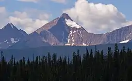 Mount King is a 2,868-metre (9,409-foot) mountain summit located in Yoho National Park, in the Canadian Rockies of British Columbia, Canada. Its nearest higher peak is Mount Deville, 5.0 km (3.1 mi) to the northwest.[1] Both are in the Van Horne Range, which has the oldest mountains in the Rockies, and as such they are highly eroded.[2] Mount King is a landmark that can be seen from Highway 1, the Trans-Canada Highway in the Kicking Horse valley and Kicking Horse Pass areas. The mountain is situated 14 kilometres southwest of Emerald Lake, and 13 km southwest of Field, British Columbia.