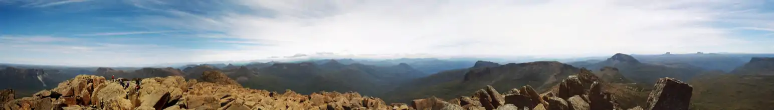 Mount Ossa is the highest mountain in Tasmania, with a summit elevation of 1,617 metres (5,305 ft) above sea level.[3] It makes up part of the Pelion Range within Cradle Mountain-Lake St Clair National Park in the Central Highlands region of Tasmania, Australia.