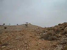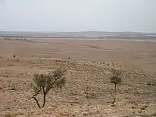 The first Europeans to venture into the area was the expedition led by Captain Charles Sturt, who arrived at the height of summer during a drought in 1845. For many months the party camped by a waterhole in a rocky basalt glen which is now known as Depot Glen, and many of the men were ill with scurvy. James Poole, Sturt's second in command, died shortly after the group broke camp and his body was buried under a Beefwood tree not far from the camp at the glen.[1] The tree was marked with Poole's initials and Sturt had his men erect a stone cairn on a nearby rise.[2]