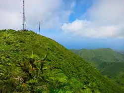 The Mt. St. Catherine massif is the youngest of the five volcanoes on the island. The volcano has a ~1.5-km horseshoe-shaped crater open to the east, where a complex of volcanic lava domes occur across its flanks and is monitored by the Seismic Research Center of the University of the West Indies. The volcano is considered dormant because it has likely not erupted since the last Ice Age.[1] It is considered to be the only live volcano among the five volcanic centers in Grenada on account of its relatively well preserved morphology and the presence of hot springs and fumaroles on its flanks. Although violent eruptions occurred in the geological past (i.e. Pleistocene—2,588,000 to 11,700 years ago), revealed by voluminous pyroclastic-flow deposits extending northwest of the summit, this type of volcanic activity is now considered unlikely to occur in the near future.