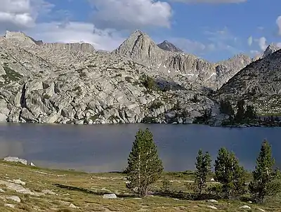 ![]() Mount Spencer (center left) from Evolution Lake | |