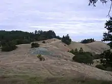 Mount Tamalpais is the highest peak in the Marin Hills, which are part of the Northern California Coast Ranges. The elevation at the West Peak, where a radar dome currently stands, is between 2,560 feet (780 m) and 2,578 feet (786 m)[10] It stood over 2,600 feet (792 m) before the summit was flattened for the radar dome construction. The East Peak is at 2,571 feet (784 m).[11] The mountain is clearly visible from the city of San Francisco and the East Bay region.