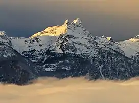 Mount Tilley is a 2,649-metre (8,691-foot) mountain summit located in the Gold Range of the Monashee Mountains in British Columbia, Canada. Situated west of the Columbia River and Upper Arrow Lake, this peak is visible from the Trans-Canada Highway, Revelstoke, and Revelstoke Mountain Resort ski area. Its nearest higher peak is Mount Begbie, 3 km (1.9 mi) to the east, with Tilley Lake set in the saddle between the two peaks.[2]