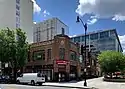 In the late 20th century and early 2000s Mount Vernon Triangle had a reputation for being home to prostitutes, derelict buildings, and parking lots.[8] The old McDermott Shops at 5th and K Streets operated as a strip club.[9] While the Walter E. Washington Convention Center near the neighborhood's western edge was being built, community and local business leaders put forth a plan to redevelop Mount Vernon Triangle.[8] Hundreds of millions of dollars were spent constructing hotels, residential buildings with ground-floor retail, and commercial properties. It was during this time that historic preservationists took note of the older buildings still standing in the neighborhood.[9][10]