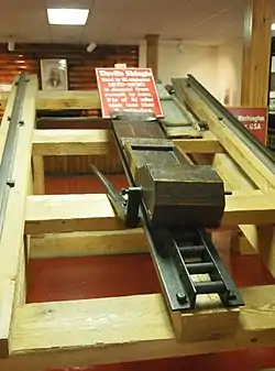 The rack rail design used is one of Marsh's own inventions, using a ladder-like rack with open bar rungs engaged by the teeth of the cog wheel. This system allows snow and debris to fall through the rack, rather than lodging in it.[23] A similar design, called the Riggenbach rack system, was invented by engineer Niklaus Riggenbach in Switzerland at about the same time. The Swiss Consul to the United States visited Marsh while constructing the railway up Mount Washington, and his enthusiastic reports persuaded the Swiss government to commission Riggenbach to build the Vitznau-Rigi-Bahn on Mount Rigi, which opened on May 21, 1871.[24]