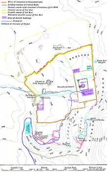 "Only in spring of 1848 did the British consul general in Constantinople and his colleague in Jerusalem,[ James Finn,] receive a firman to purchase a cemetery plot for the Protestant community."[4] Prepared by Nicolayson, later buried there, and with the support of Hugh Rose, British consul-general for Syria, and the Mutasarrıf of Jerusalem, Zarif Pasha, Bishop Gobat acquired the tract of land on Mount Zion in the same year, paying £ 350 (= 4,200 French francs) for the land, its enclosure and levelling.[5] Gobat financed the expenses with private funds earlier donated by Britons, Germans and Swiss, of which by December the British Government recovered £100 and later private British donators another £46.2.0, while Prussians did not specifically contribute to the project at that time. Mount Zion Cemetery replaced the old cemetery West of Jaffa Gate. So Gobat transferred the graves from there to the new cemetery on Mount Zion.[6] By the end of November 1848 it was completely enclosed by a wall.[5]