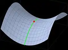 Mountain passes make use of a gap, saddle, col or notch. A topographic saddle is analogous to the mathematical concept of a saddle surface, with a saddle point marking the highest point between two valleys and the lowest point along a ridge.[2][3] On a topographic map, passes are characterized by contour lines with an hourglass shape, which indicates a low spot between two higher points.[4] In the high mountains, a difference of 2,000 meters (6,600 ft) between the summit and the mountain is defined as a mountain pass.[5]