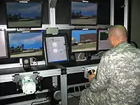 The MWTB started as the initial site of the SIMNET-D [1] program in 1986. SIMNET-D was a spinoff of the SIMNET[2][3] program, which was the first successful program to use low-cost computers to construct virtual simulators whose resources were distributed rather than centralized. These M1 Abrams and M2 Bradley simulators, along with the Semi-Automated Forces simulation and the Management Command and Control (MCC) system, allowed the creation of a realistic battlefield where participants could actively fight an enemy using current systems in real time.