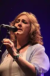 Moya Brennan (born Máire Philomena Ní Bhraonáin[lower-alpha 1] on 4 August 1952),[2] also known as Máire Brennan, is an Irish folk singer, songwriter, harpist, and philanthropist. She began performing professionally in 1970 when her family formed the band Clannad.[3] Brennan released her first solo album in 1992 called Máire, a successful venture.[4] She has received a Grammy Award from five nominations and has won an Emmy Award.[5][6] She has recorded music for several soundtracks, including Titanic, To End All Wars and King Arthur.[7][8]
