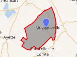 Moyenneville is situated 8 miles (13 km) south of Arras, at the junction of the D32 and C4 roads.