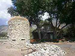 The house was expanded in 1859-1860 from a c.1858 dugout house. The tower, built during 1860–1866, was built as a private fort for defense against Indians of the Black Hawk War of 1865–1868, and is the only such tower known to have been built for protection of a single household in Utah. These stone structures were built by English-born mason and Mormon, John Rowe Moyle. His son Joseph Moyle expanded the house in 1917, adding Bungalow/Craftsman elements. A dugout/food cellar also was built during c.1858–60. These three structures are included in the NRHP listing.[2]
