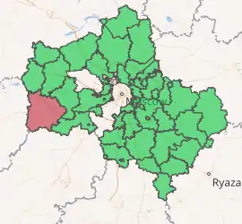 Mozhaysky District (Russian: Можа́йский райо́н) is an administrative[1] and municipal[2] district (raion), one of the thirty-six in Moscow Oblast, Russia. It is located in the west of the oblast and borders with Smolensk Oblast in the west, Kaluga Oblast in the south, Shakhovskoy District in the north, Volokolamsky District in the northeast, Ruzsky District in the east, and with Naro-Fominsky District in the southeast. The area of the district is 2,627.28 square kilometers (1,014.40 sq mi).[2] Its administrative center is the town of Mozhaysk.[1] Population: 72,745 (2010 Census);[3] 70,303 (2002 Census);[8] 42,593 (1989 Census).[9] The population of Mozhaysk accounts for 43.1% of the district's total population.[3]