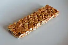 Mr. Tom is a candy bar containing roasted peanuts and caramel. Its wrapper has a yellow background and red text. It is manufactured by Hosta Meltis, a division of Swiss company Hosta International.[2]
