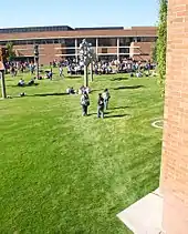 Mount Spokane High School is a public high school located in Mead, Washington. It is located several miles north of Spokane and has a student body that currently enrolls 1,382 students in grades 9-12.[2] The school opened in 1997, and had its first graduating class in 1999.[3] Mt. Spokane is one of two high schools in the Mead School District, the other being Mead High School who has lost two consecutive Battle of the Bells.