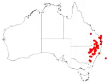 The main hosts on which M. bidwillii grows are Callitris species, in particular Callitris glaucophylla.[3] An inventory of host plants for Muellerina bidwillii spp. is given by Downey.[6][7]