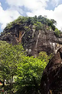 Mulkirigala Raja Maha Vihara (also known as Mulgirigala Raja Maha Vihara) (Sinhala: මුල්කිරිගල රජමහා විහාරය) is an ancient Buddhist temple in Mulkirigala, Sri Lanka. It has been built on a 205 m (673 ft) high natural rock, surrounded with another four rocks known as Benagala, Kondagala, Bisogala and Seelawathiegala. The temple site is located about 2 km (1.2 mi) from the Mulkirigala junction and can be reached from either Dikwella or Tangalle towns. The temple has been formally recognised by the Government as an archaeological site in Sri Lanka. The designation was declared on 8 April 1988 under the government Gazette number 501.[1]