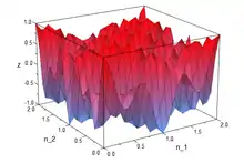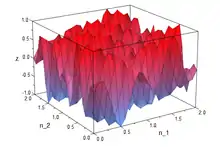 A 2-D modulation comprises a space domain that has 2 independent variables e.g. x(n1,n2) with a corresponding frequency domain that also has 2 independent variables X(ω1, ω2).