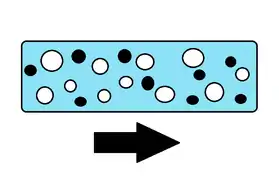 An example of multiphase flow on a smaller scale would be within porous structures. Pore-structure modelling enables the use Darcy's law to calculate the volumetric flow rate through porous media such as groundwater flow through rock.[12] Further examples occur within the bodies of living organisms, such as blood flow (with plasma being the liquid phase and red blood cells constituting the solid phase.[13] Also flow within the intestinal tract of the human body, with solid food particles and water flowing simultaneously.[14]