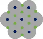 In DRAM, the array and periphery are exposed at different illumination conditions. For example, the array could be exposed with dipole illumination while the periphery could use annular illumination.[25] This situation applies to any set of patterns (half-pitch < 0.5 λ/NA) with different pitches or different feature arrangements, e.g., rectangular arrays vs. staggered arrays.[26][27][28][29] Any of the individual patterns is resolvable, but a single illumination cannot be used simultaneously for all of them.