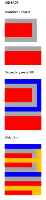 | 48 nm | SADP + block mask | 2 | IBM/Samsung/GlobalFoundries | 2013 IITC |
