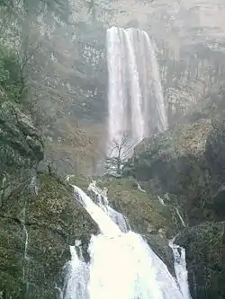 The Mundo river is well known for its picturesque source, which is considered to be of the world most beautiful river sources. The river originates from a cave in the middle of a tall cliff and forms a waterfall with a height of almost 100 meters. Subsequently, it forms a series of smaller cascades and pools. The cave itself is about 15 meters wide and 25 meters high and constitutes the end of a large cave system under the Calar del Mundo.[5]