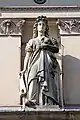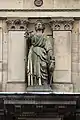 The building has three storeys and is built of stone with a lead roof. The design of the building was influenced by both Italian and French Renaissance. Around the balcony are sixteen sandstone figures representing the arts, sciences and industries of Liverpool. In the centre of the building is the tower, with its balconies, clocks and five bells. The four quarter bells are hung for English-style Change Ringing. A two-stage pyramidal spire is situated on the top the tower.[7]