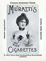 Various poster, billboard and magazine advertisements have been made to promote Muratti, both before and after World War II. The ones made after the war were especially promoting the "Charcoal multifilter" it had.[10][11][12][13][14][15][16][17][18]