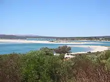 The mouth of the estuary is a small delta, closed by a sandbar except for a narrow channel. Although this channel is permanently open, it is usually very narrow and shallow, and so is now dredged every year to allow passage by western rock lobster fishing boats.[9]