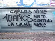 - "Unidad a un año de la muerte de Carlos | Periódico Diagonal". www.diagonalperiodico.net. Retrieved 23 February 2021.