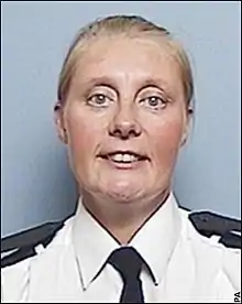 PC Sharon Beshenivsky (née Jagger; 14 January 1967 – 18 November 2005)[3] was a West Yorkshire Police constable shot dead by a criminal gang during a robbery in Bradford on 18 November 2005, becoming the 7th female police officer in Great Britain to be killed on duty. Her colleague, PC Teresa Millburn, was seriously injured in the same incident. Millburn had joined the force less than two years earlier; Beshenivsky had served only 9 months in the force at the time of her death.