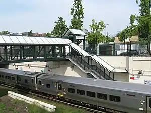 Murray Hill station was originally built in April 1889, and torn down in 1912[2] when the Port Washington branch was depressed below grade in this area between 1912 and 1914. The station house was replaced in July 1914 with one built on a bridge built over the tracks.[3] This structure was torn down in 1964, and Murray Hill continues to operate as an unmanned station to this day. Minor renovations took place between 1991 and 1993. A new pedestrian bridge as well as other amenities were added in 2005. Two elevators were opened by May 4, 2020.[4] The elevators were originally slated for completion in 2019,[5] but were delayed to mid-2020 due to delays in the delivery of elevator cabs.