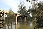 The river was once used as a transport route, with paddle steamers navigating the river as far as Gundagai. The river trade declined with the coming of the railways. Paddle steamers last used the Murrumbidgee in the 1930s. To allow the steamers and towed barges to pass, there were opening bridges at Hay , Balranald, and Carathool[24][25]