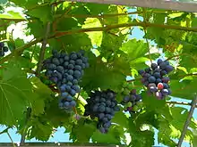 While Muscat of Hamburg is used mostly as a table grape throughout the world, there are two notable exceptions. The first is in California, where nearly all of the 102 hectares (250 acres) of Black Muscat in cultivation in 2009 were destined for wine production, primarily to produce dessert wines.[3] The other exception is in China, where Muscat of Hamburg is often crossed with Vitis amurensis species that are native to the region to produce wine grapes that are better adapted to the climate of various Chinese wine regions.[4]