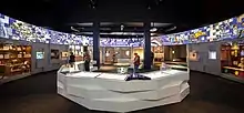 The Museum focused on the Eureka Stockade as the place of origin of Australia's democracy.[5][6] The Museum housed the original Eureka Flag, upon which the rebels swore an oath to the flag as a symbol of defiance against the ruling colonial government.[7] The flag was on loan from the Art Gallery of Ballarat.[8][9]