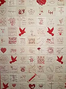 The Museum also housed the Quilt of Hope,[34] a community art project created by the Moving Towards Justice group which commemorated the lives of victims of institutional sexual abuse in Ballarat.[35] After the Museum was closed, the Quilt of Hope was donated to the Museum of Australian Democracy at Old Parliament House in Canberra.