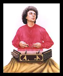 Chakri is one of the most popular types of traditional music played in Jammu & Kashmir. Chakri is a responsorial song form with instrumental parts, and it is played with instruments like the harmonium, the rubab, the sarangi, the nout, the geger, the tumbaknaer and the chimta. It is performed in folk and religious spheres, by the Muslim and Hindu kashmiris.[2] Chakri was also used to tell stories like fairy tales or famous love stories such as Yousuf-Zulaikha, Laila-Majnun, etc. Chakri ends with the rouf, though rouf is a dance form but few ending notes of Chakri which are played differently and on fast notes is also called Rouf.[3] It is a very important part of the Henna Night (Ma'enzi raat) during weddings.