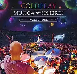The Music of the Spheres World Tour is the ongoing eighth concert tour being undertaken by British alternative rock band Coldplay. It was announced on 14 October 2021, in support of their ninth studio album Music of the Spheres, which marked the band's return after the COVID-19 pandemic.[1] They had not toured for the promotion of their previous album, Everyday Life (2019), as it was decided to pause touring until they could work out how to ensure that it would be environmentally friendly.