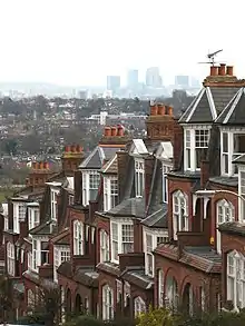 Parallel with Muswell Hill was a track known as St James's Lane which ran across a triangle of wasteland. By the middle of the 19th century houses were already dispersed along the lane at the foot of which was Lalla Rookh, a two-storeyed villa with a wide verandah.[15] Other buildings there were apparently cottages or huts, both single and in terraces.[16]