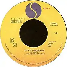 "My City Was Gone" is a song by the rock group The Pretenders. The song originally appeared in October 1982 as the B-side to the single release of "Back on the Chain Gang";[1] the single was the first release for the band following the death of founding bandmember James Honeyman-Scott. The song was included on the album Learning to Crawl released in early 1984, and it became a radio favorite in the United States. It is sometimes referred to as "The Ohio Song" for its constant reference to the state, though it is not part of the song's title. The song's final title was chosen because there had already been a song called "Ohio" by Crosby, Stills, Nash and Young.