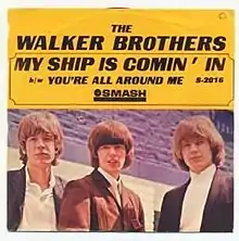 "My Ship Is Comin' In" is a song written by Joey Brooks which was first a song for the American soul singer Jimmy Radcliffe in 1965 and was later recorded and released by the American pop group The Walker Brothers as their fourth single that same year. Outside the US and Canada, the song's title was "My Ship Is Coming In". The accompaniment was directed by Ivor Raymonde. The song appeared as the opening track on the group's debut US studio album Introducing the Walker Brothers.
