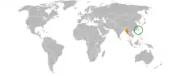 Myanmar–Taiwan relations refers to the international relations between Myanmar and the Republic of China. There are no official relations between the two countries, as Myanmar only recognizes the People's Republic of China.[1]