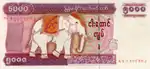 K5000 | 150 × 70 mm | Orange and pink | Elephant | Pyidaungsu Hluttaw (Assembly of the Union) legislature buildings in Zeya Theddhi Ward of Naypyidaw | Elephant profile over value | 1 October 2009[27] | Value above watermark |
