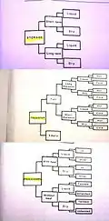 To the ample Mycenaean material at Knossos was added a new script and the confirmation of an old. In the "Room of the Chariot Tablets" some wooden boxes had been smashed open spilling a cache of inscribed, hardened clay tablets. This writing Evans termed "a linear form of script."[23] By that he meant to oppose it to another, more rarely testified script, which he called "hieroglyphic," defined as a "conventional pictographic class." He had previously been a student of Cretan signatories. He explained his new term by saying "Unlike the regular arrangement of the linear script in separate lines from right to left, these hieroglyphic characters ... present a much more jumbled aspect."[24]