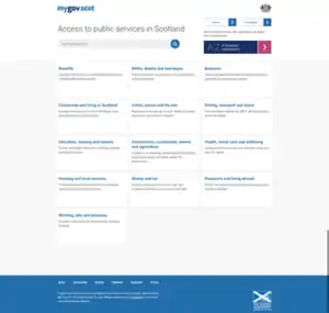 mygov.scot is a Scottish Government public sector information website. The site has been created to provide a single point of access to central government services in a way that is “easy to find and simple to use.”.[1] The website is replacing older Scottish Government websites as part of a rolling transitioning project, removing duplication of content.[2]