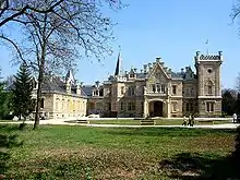 The Nádasdy Mansion is a neo-gothic style manor house designed by István Linzbauer and Alajos Hauszmann situated on 24 hectares in Nádasdladány, Hungary. It dates from 1873 to 1876, and belonged to the Nádasdy family. It was used for the exterior of the vampires' mansion in the Underworld film series.