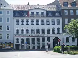 No. 12 is home to the Danish Union of Professional Technicians (TL). The building is the former headquarters of the glass manufacturer Kastrup Glassworks. It was designed by Phillip Smidth and built between 1892 and 1895.[6] The Iron Manufacturers' House at No. 30 from 1904 was designed by Gotfred Tvede. The building with the rounded corner at No. 32–34 is from 1939 and was designed by Povl Baumann.[7] No. 50 is from 1828 and has since 1900 been part of the theatre Folketeatret whose main entrance is on Nørregade.[8] The headquarters of the DaneAge Association is located at the corner of Nørre Voldgade and Nørregade. The building on the corner of Nørre Voldgade (No. 76) and Fiolstræde is the former Merchants' Academy, now Niels Brock Copenhagen Business College. It was designed by Valdemar and Bernhard Ingemann and opened in 1902.[9]